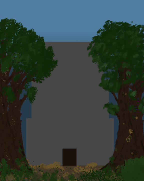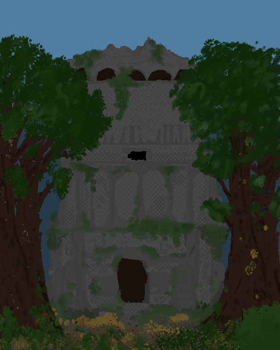I started by creating my Trees for which I created a basic outline of the branches and then used the foliage paint brush and a smudge tool to create the leaves, I used the same tool when creating the ground and vines and bushes on the temple structure.