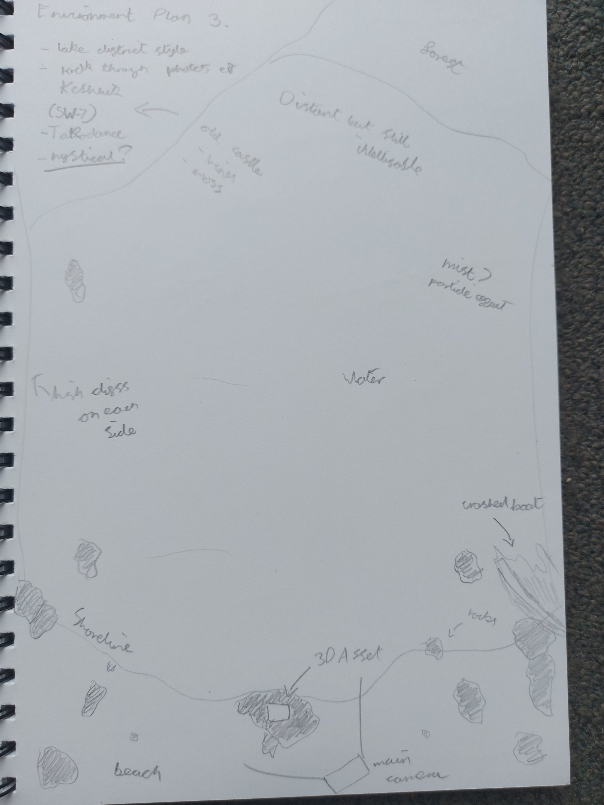 With that in mind I drew some top-down sketches to show how I could possible layout my environment.