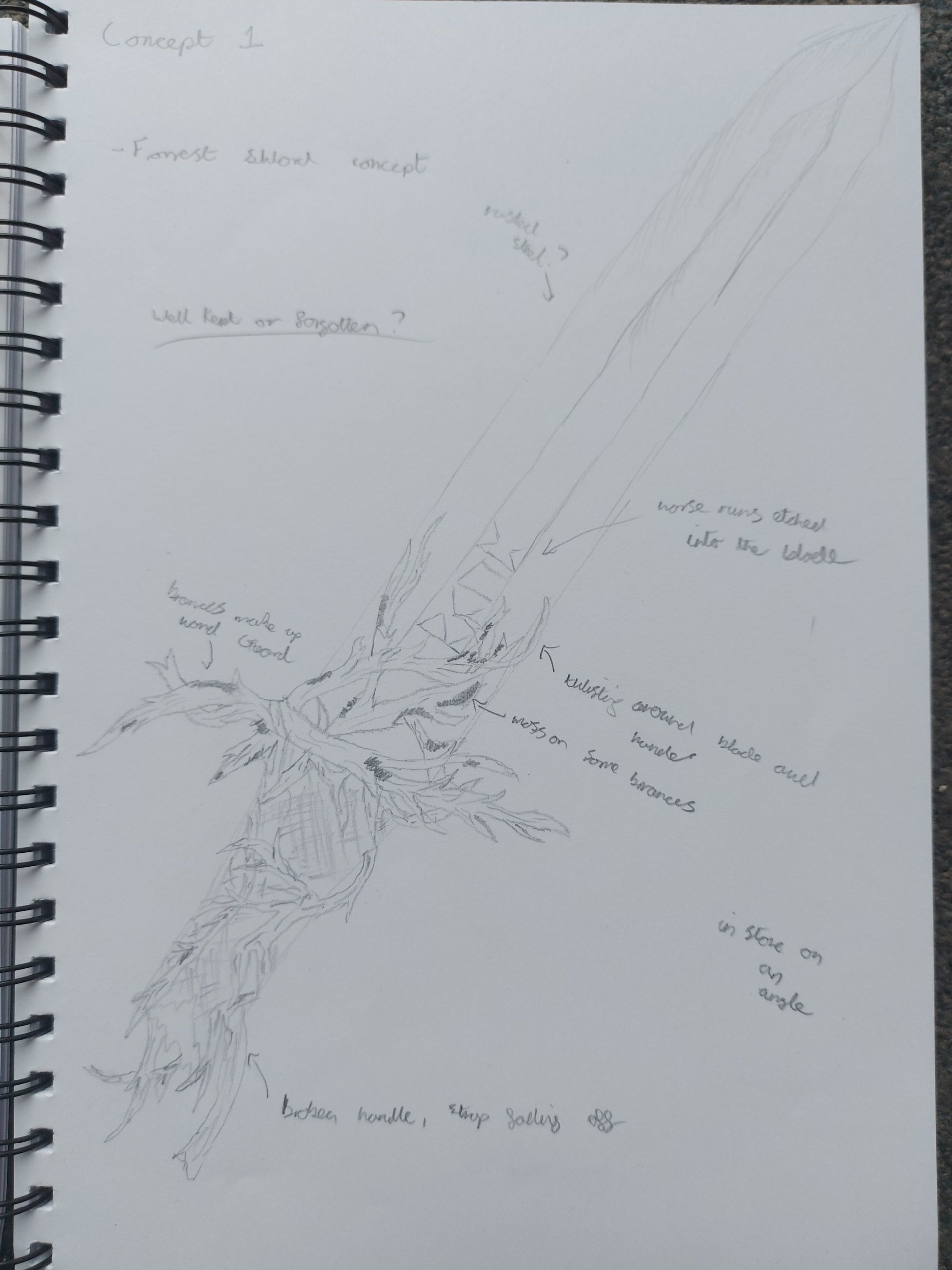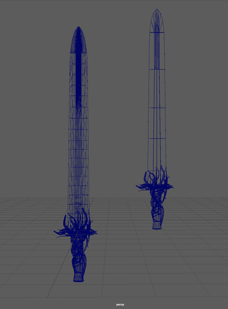 I did add some small branches later on that solely wrapped around the handle to action some feedback that the branches I had added to the blade looked static and like they had just been placed there. So I manipulated and edited some of my branches so the attached to the blade and added to small vines to wrap around the handle.