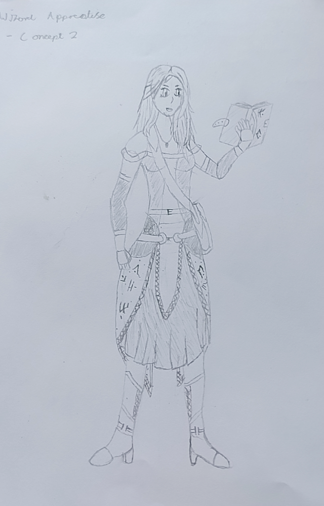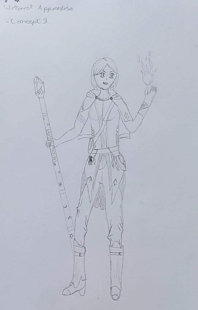 For my final concept I combined areas of all 3 wizard apprentice concepts. I decided that with the Apprentice I would be able to create a more interesting and appealing character.