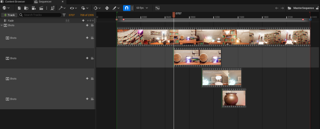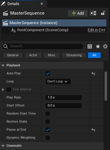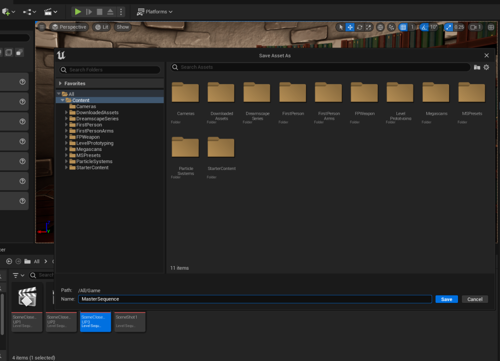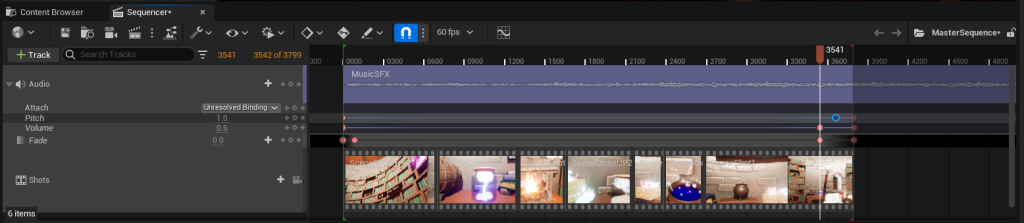 I started by creating a new level sequence that I named the master sequence, this is where I will combine all of my shots together to create the final resulting cutscene.