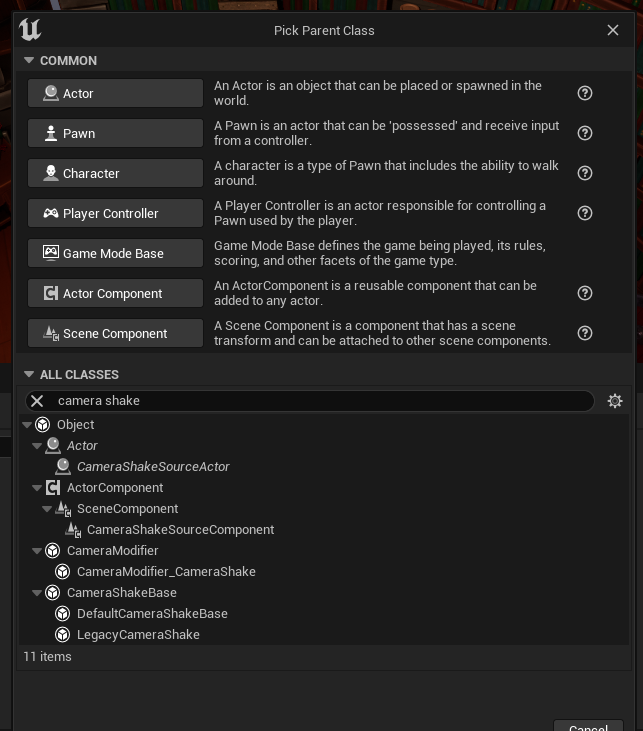 Using this as a starting point I created a camera shake blueprint class. This class is something that once created I can add to the camera of each individual shot within the master sequence.