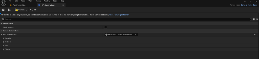 I had to open, close and open the blueprint again to make sure I had the correct editing view for the blueprint. here I am able to edit the location and rotation of the camera as it shakes.