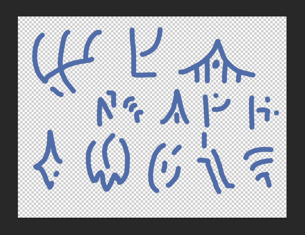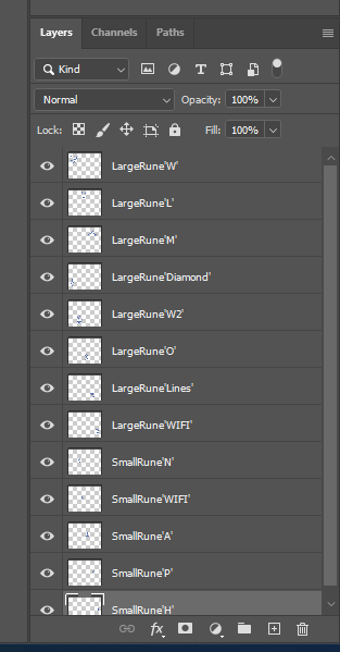 So within Photoshop I created some new images of the runes that I drew onto the Wizards Book asset I created. I then used the lasso tool to cut around each individual rune or symbol and add them to there own layer.