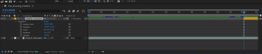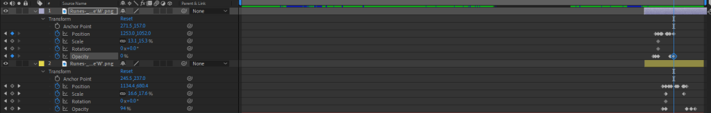 Within After Effect I can place each individual rune into the timeline and set the duration they are in the scene for (the last few seconds before it fades to black.) I can then animate the position, scale, rotation and opacity of the runes using keyframes in the timeline.