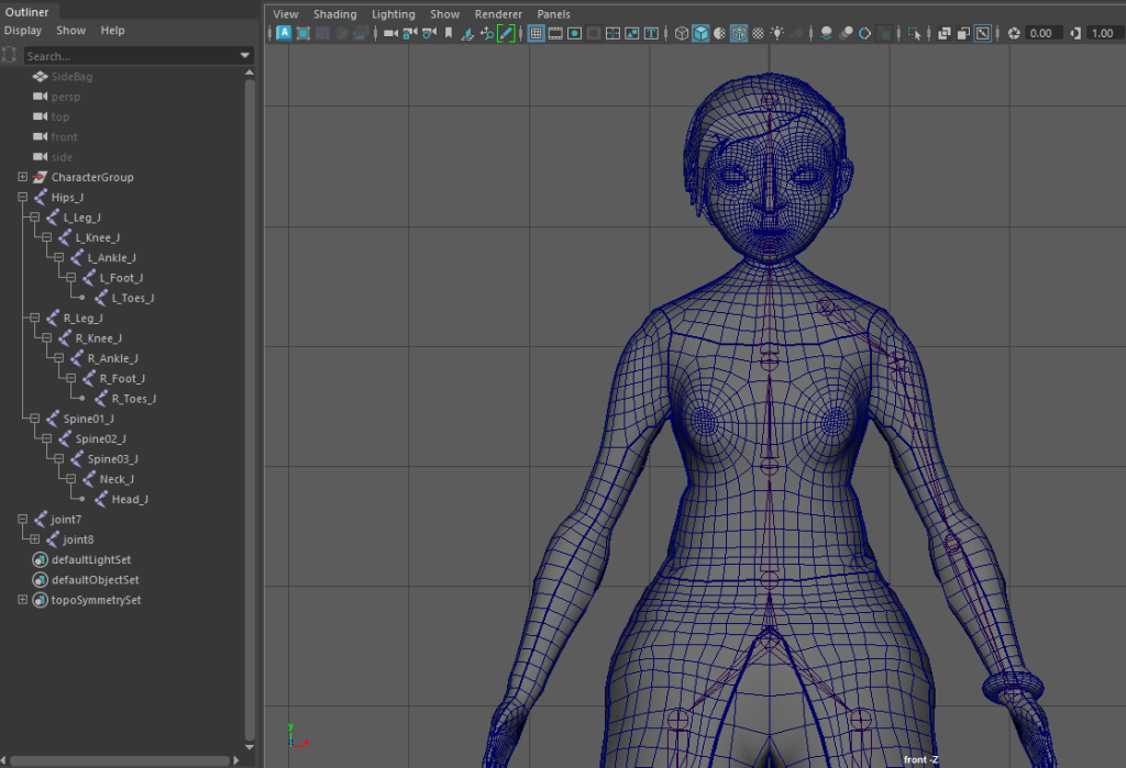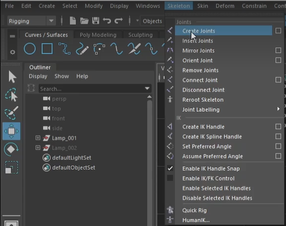 To start we looked at creating 2 different rigs that can be used on my character. These were built using some lamps and mainly were constructed by adding joints to the mesh by using the rigging tab in Maya.