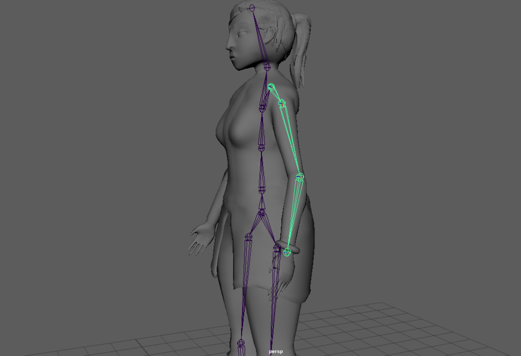 The arms where an area I spent a lot of time on, I wanted to make sure that each part looks as realistic as I can get it. I had to remove some areas where the auto weight paint that Maya did attached parts of the arms and fingers to parts of the body. This stretched some parts of the body whenever I moved the arms.