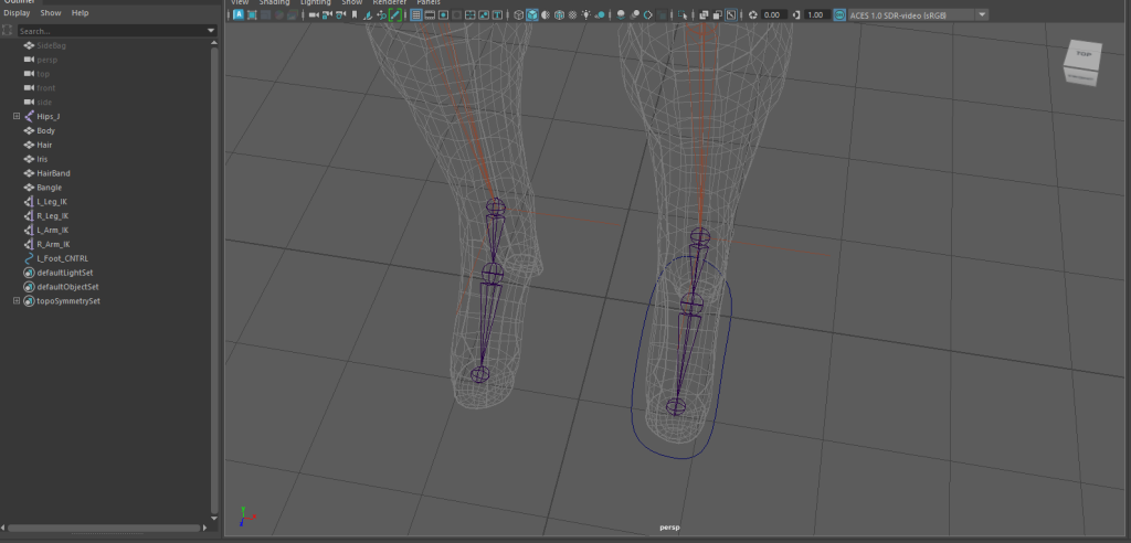 I started around the legs adding some controls for rotation of the toes and ankle before adding a control for the skirt.