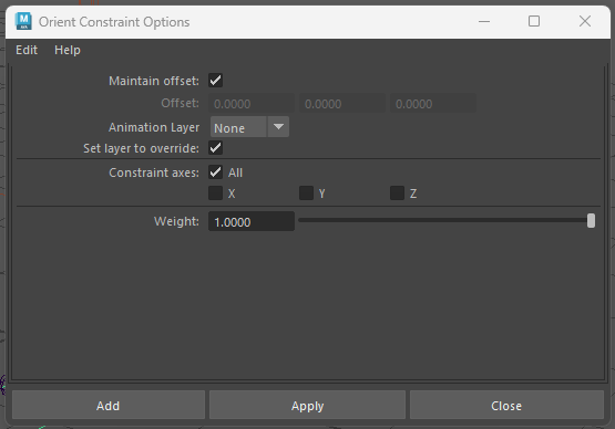 These controls have some constraints attached. (Constrain tab in Rigging Menu) These constraints attach the rig to these controls and will help influence the bones and IK for movement, as demonstrated below.