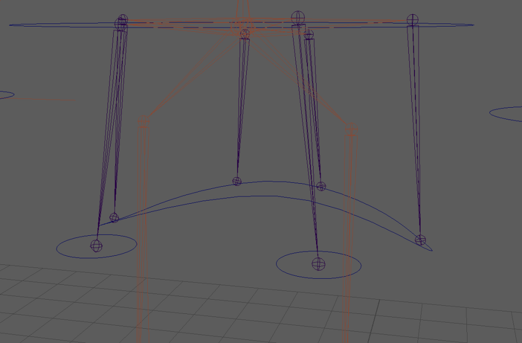 From here I added in some NURB curves to act as controls that I can move with my mouse to control these handles and joints ready to animate.
