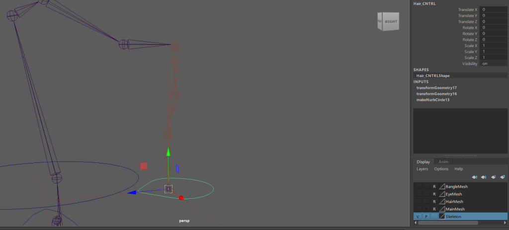 Next I added an IK handle for the hair so it has so that I can add some secondary movement within the attack and walk cycles. I also added some joints and controls for the face that will be seen later when I add weight paints to the face.