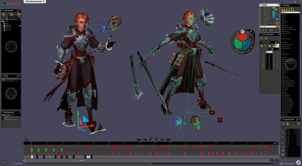 I then worked on adding in some bones to the ponytail. I can tie this to the hair mesh to get some nice swing in the walk and attack animations.