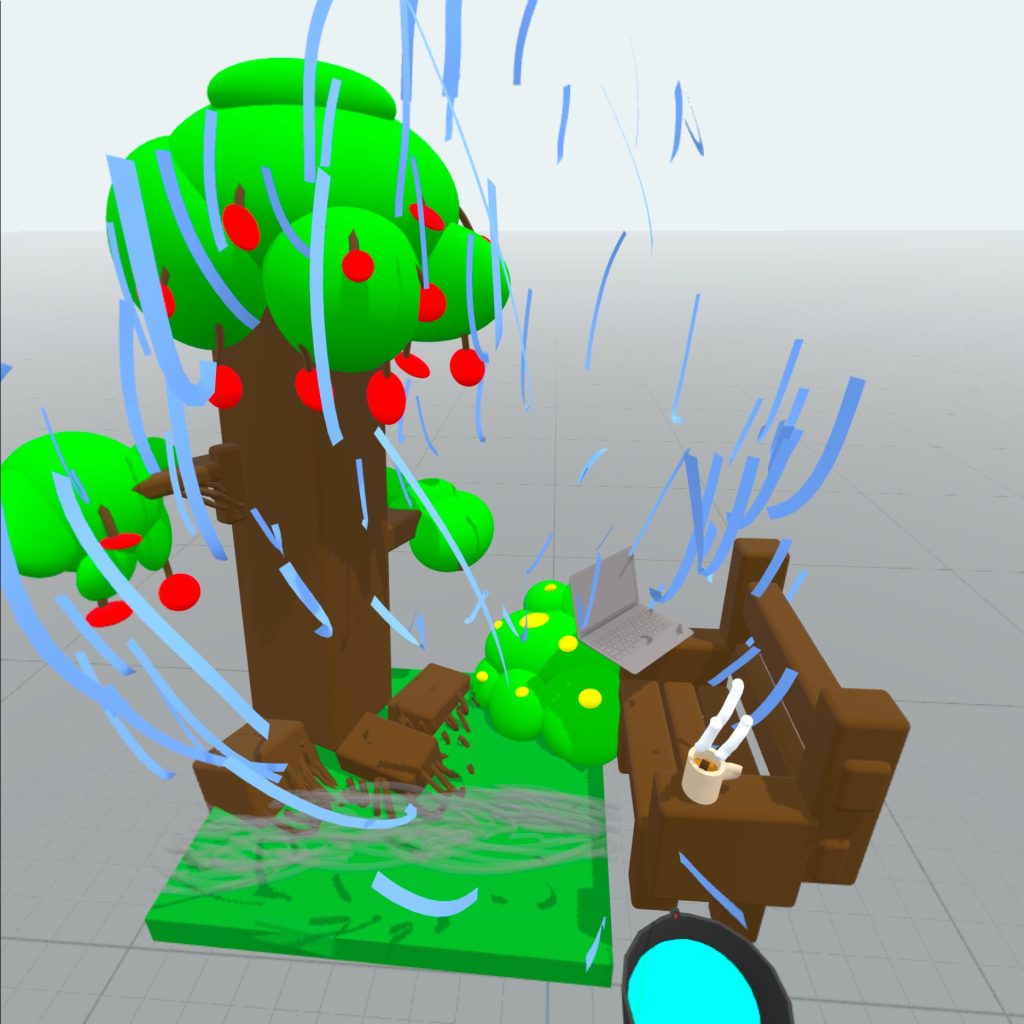 Shapes XR was the first VR program we used, It is commonly used to create interactive experiences and quick protypes. It is also a great collaborative space as there is a companion website that allows others to connect to a scene and add in pre-existing assets to help prototype ideas.