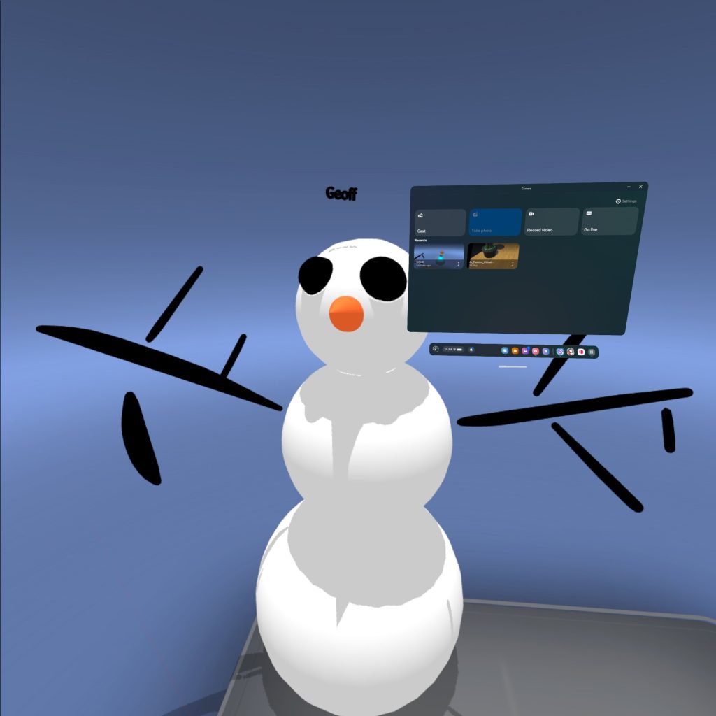 Finally we got to use Open Brush. this is more tailored towards artists and is better to concept environments and create artworks that tell stories. One area of this we were introduced to was performative art (specifically that by Rosie Summers) and how that can be done in Open Brush.