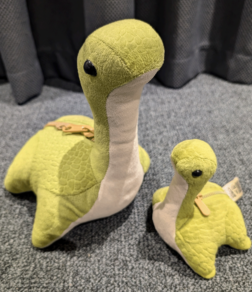 This is a ‘Nessie’ from the Apex Legends and Titanfall universe and series of games. Within Apex Legends these plush toys are hidden across the map in various locations. On the Kings Canyon map, finding all of these Nessie’s and shooting them in a certain order, allows the player to find an video game easter egg.