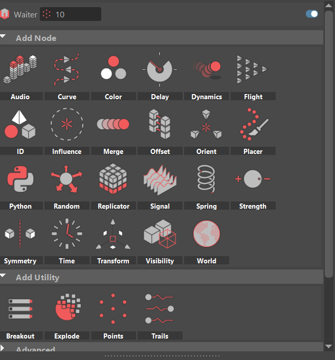 I intend to use MASH to have the backdrop and part of the studio fade away to reveal different scenes. Here I can use the Visibility, Delay and Placer nodes to set up the scene I have in mind and use the transform and signal nodes to add in animations and place them accordingly.