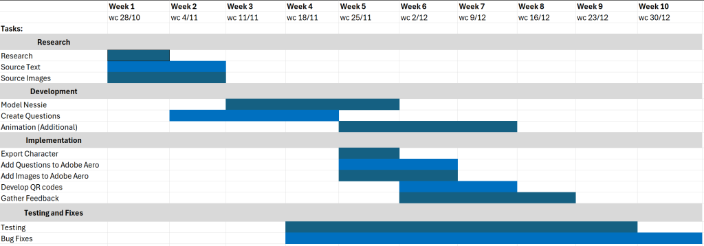 | Nessie Models | Original Asset | to be made and exported into Adobe Aero. |